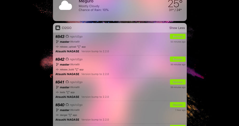 You can add CI2Go widget to Today view. This shows recent 5 builds of selected project/branch or your following projects.